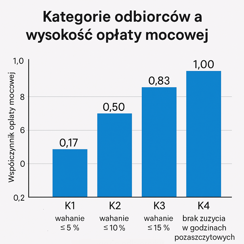 Współczynnik ustalający wysokości opłaty mocowej dla poszczególnych kategorii obiorców K1-4 będzie wynosić odpowiednio: